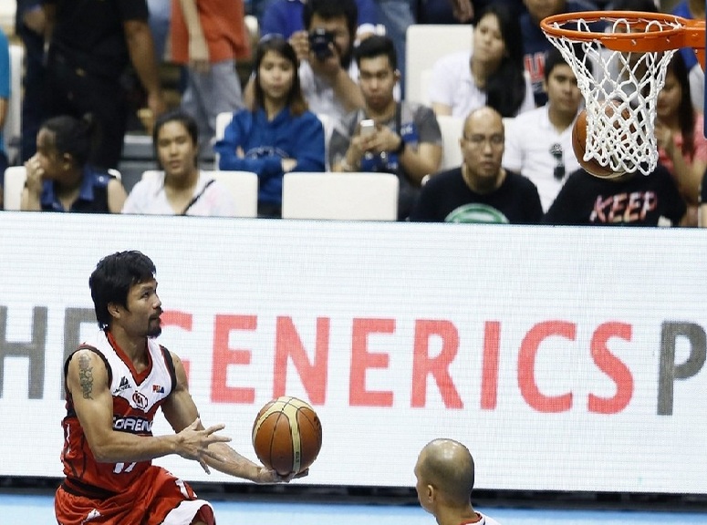 You find yourself defending the lane, and you see Kia Carnival’s playing coach Manny Pacquiao taking it strong to the hoop. What do you do?